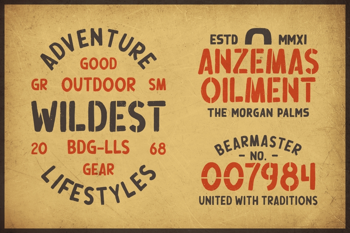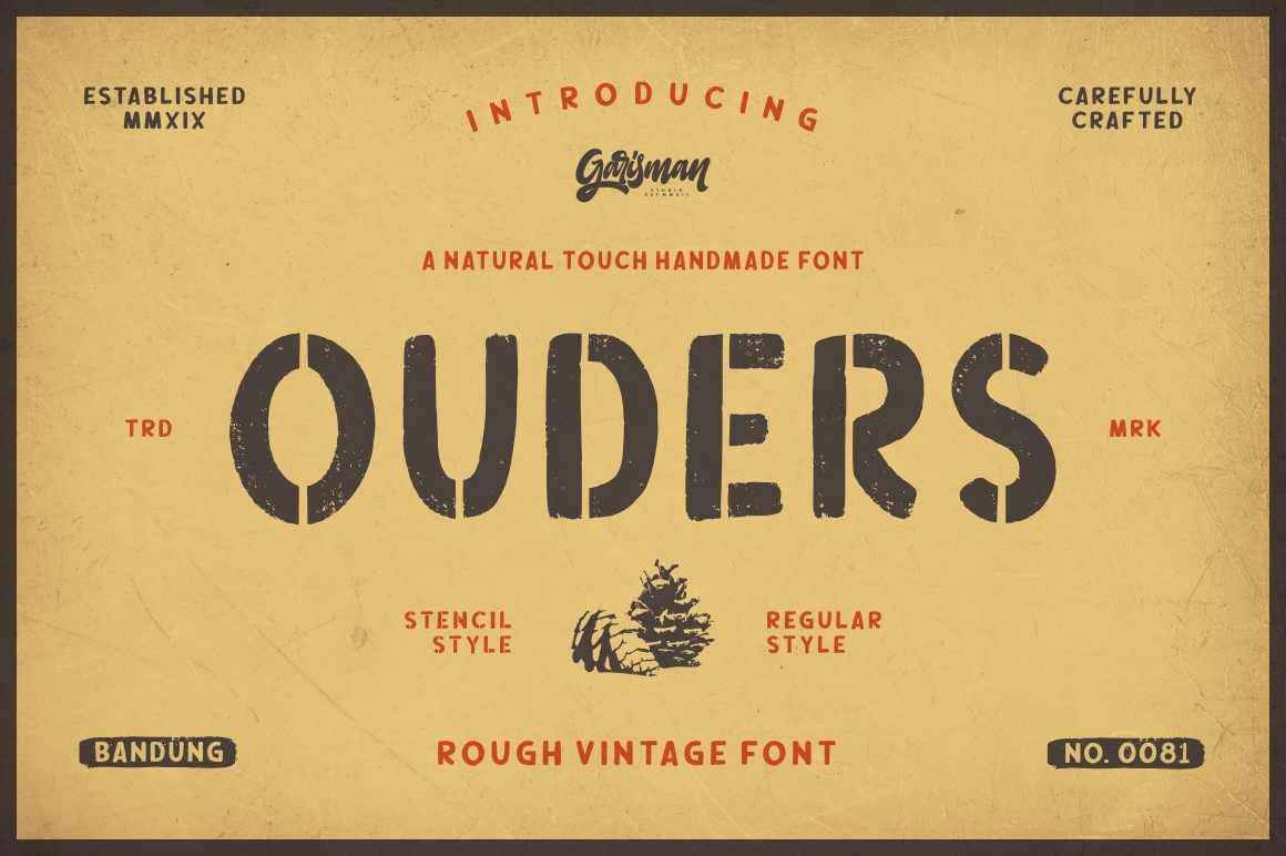 Welcome to our new vintage font with light streaks that form a vintage style with a touch of rough. Ouders very able to beautify also strengthen your work in the form of type logos, typography, handlettering, packaging, t-shirts, labels, and much more.