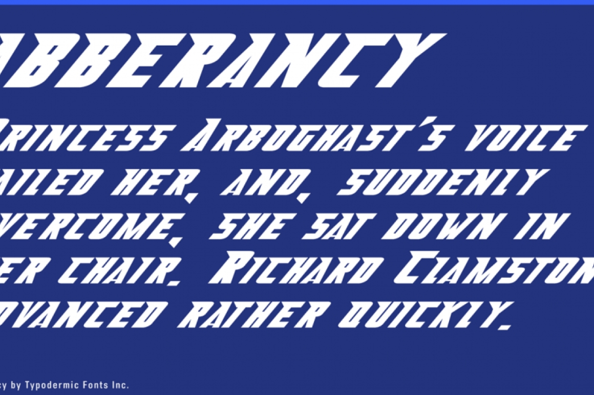 Abberancy is square & speedy, evoking a feeling of mid 20th Century vehicle graphics.