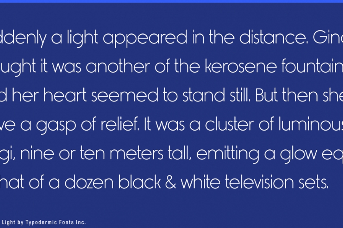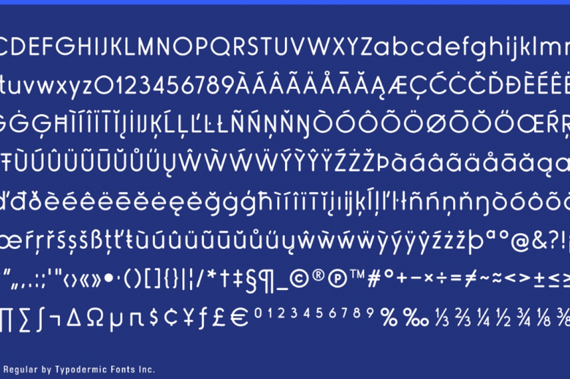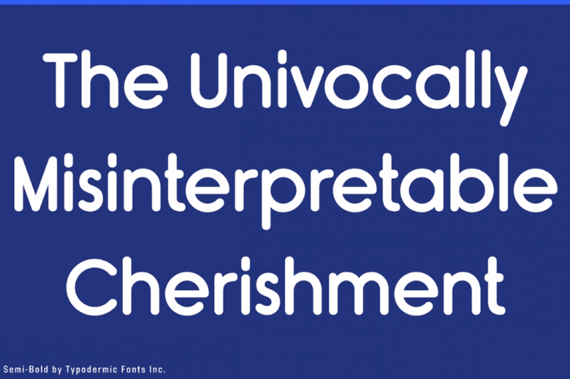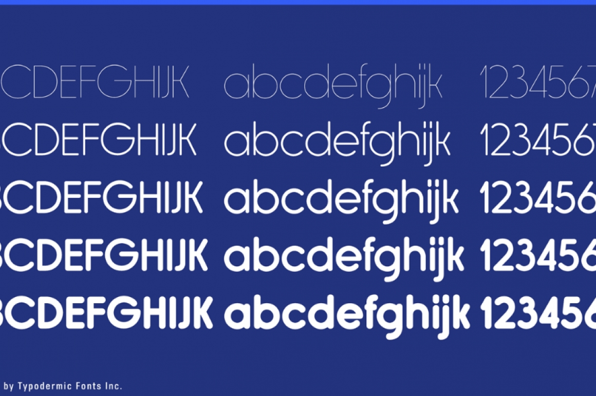 Rimouski is a rounded geometric font family. Use the OpenType “stylistic alternates” feature to unleash a spate of strangely slanted characters. The regular desktop license for Rimouski Semi-Bold is free but there are 4 other weights available: Ultra-Light, Light, Regular and Bold.