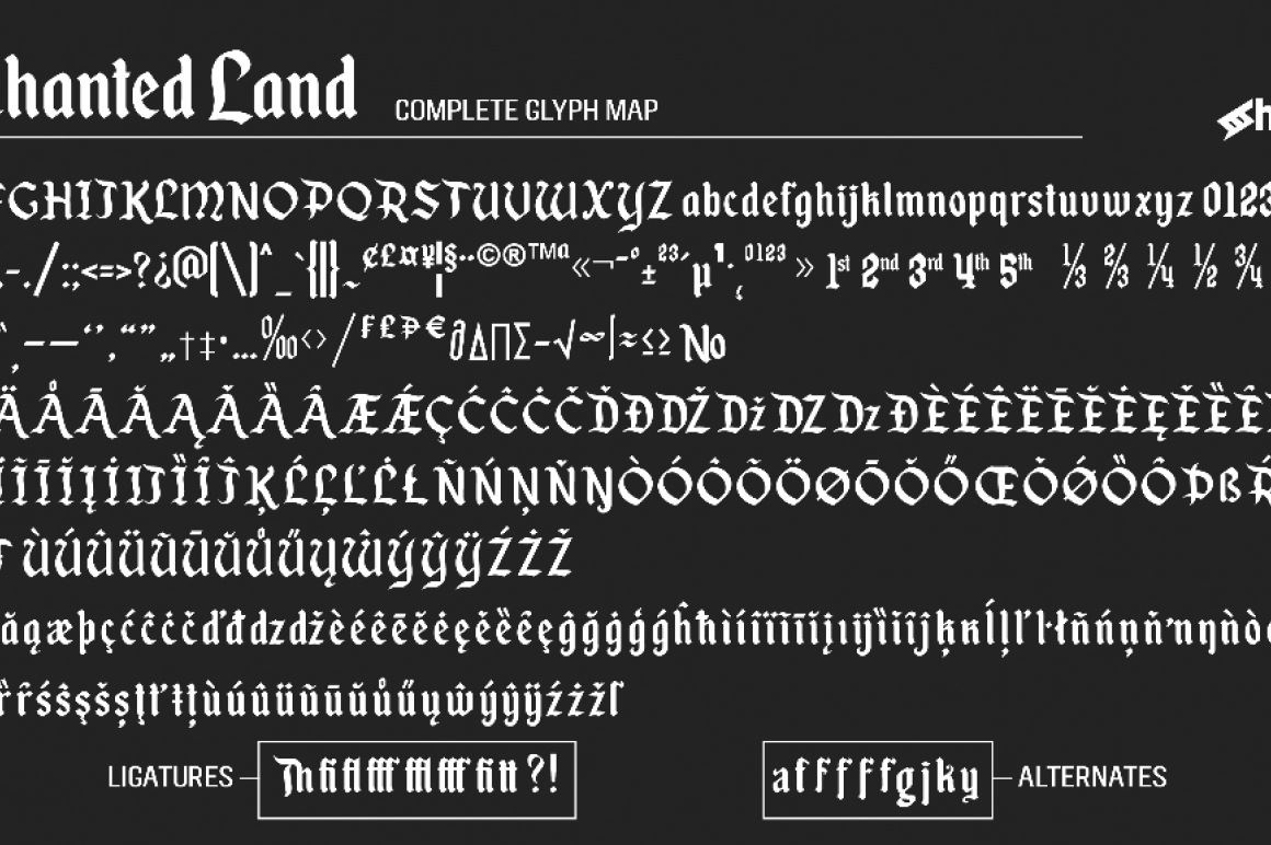 Enchanted Land for a children's project, book title, or anywhere you'd like a little magic. OTF features like kerning, ordinals, fractions, ligatures, alternates, proportional numbers,