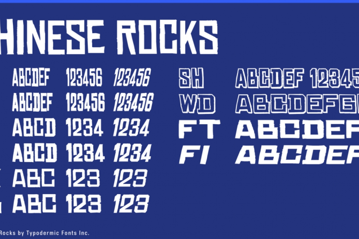 Chinese Rocks was inspired by hand-cut rubber-stamp lettering on 20th Century Chinese export containers.
