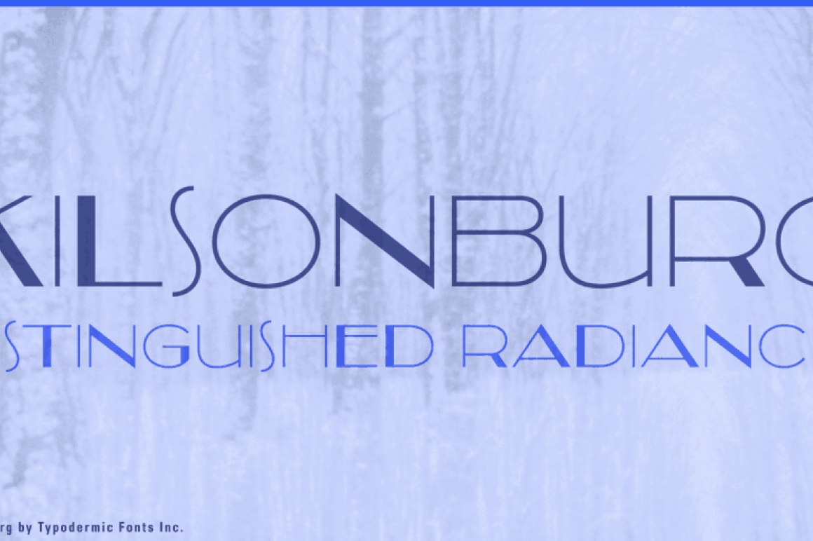 Kilsonburg is a geometric Art Deco titling font inspired by an early 20th century Vogue magazine cover.