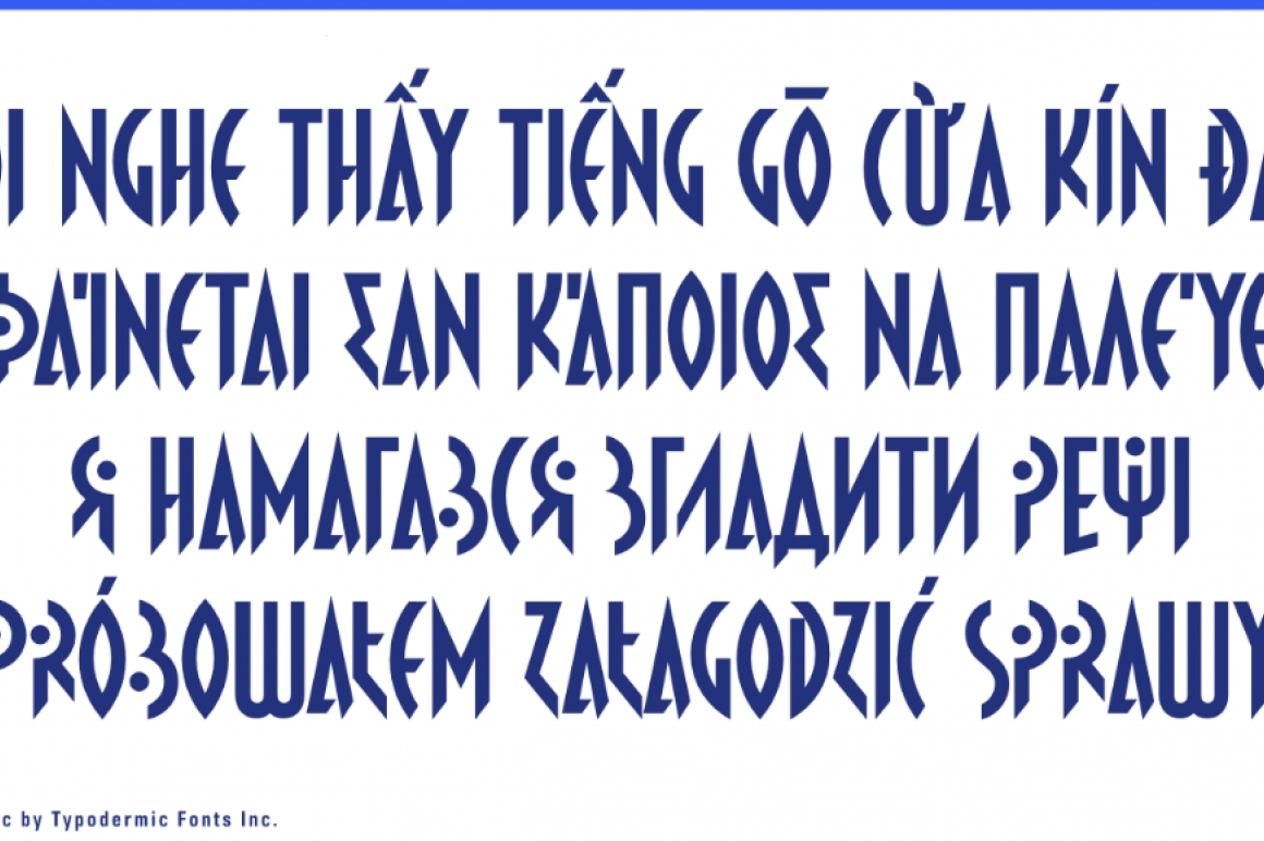 Propaniac is a 1980s-style postmodern typeface inspired by a Pointer Sisters record sleeve which was designed by Shoot That Tiger Creative Services. Almost all current Latin based languages are supported, including Vietnamese, Cyrillic languages and Greek.