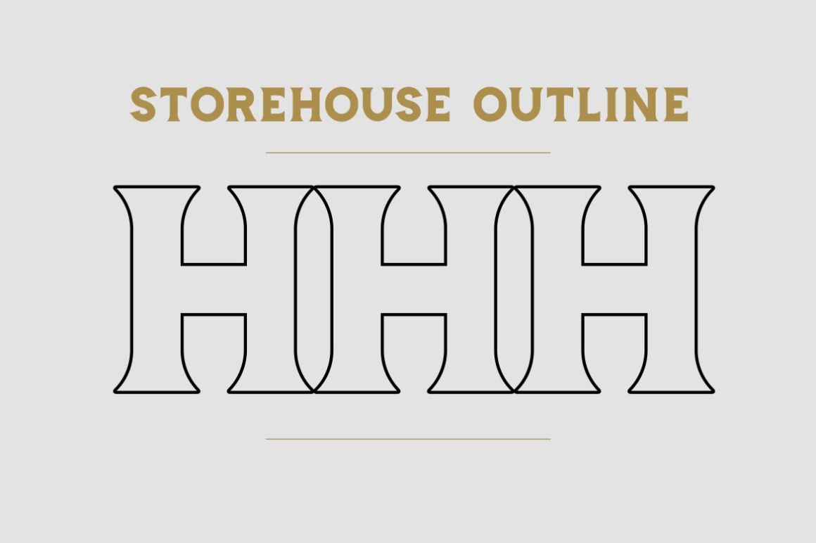 Storehouse Outline - OpenType font file – Outline version of regular version, amazing in matching with regular version as a back shadow. full set of uppercase letters, international support, punctuation, and a wide variety of extra characters.
