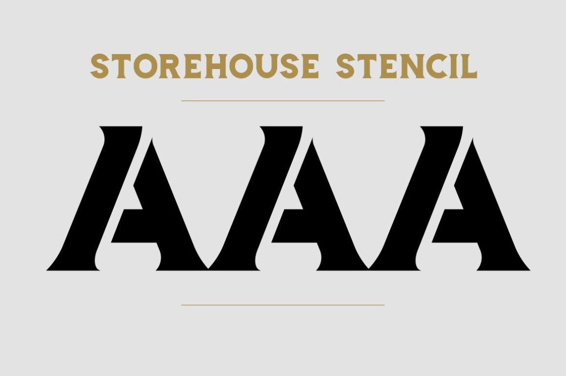 Storehouse Stencil - OpenType font file – Stencil font with amazing old fashioned modern touch. Full set of uppercase letters, international support, punctuation, and a wide variety of extra characters.