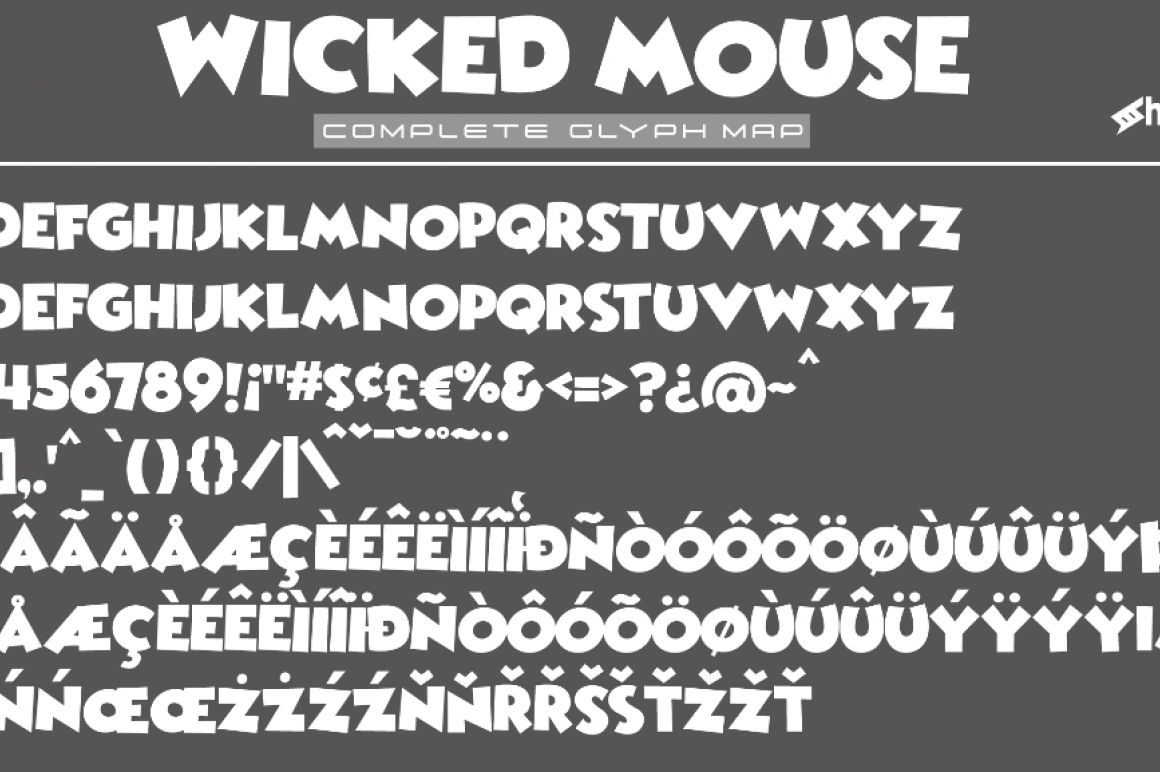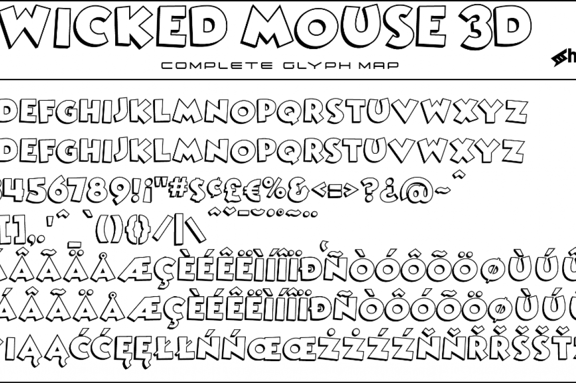 mirror their uppercase counterparts in the 3D one. Do check the included glyph maps for all the characters. (slight overlap to be expected with some of the characters) Wacky, childlike, and loose in nature, you'll be able to inject a bit of fun with this typeface into a drab project. Use Wicked Mouse
