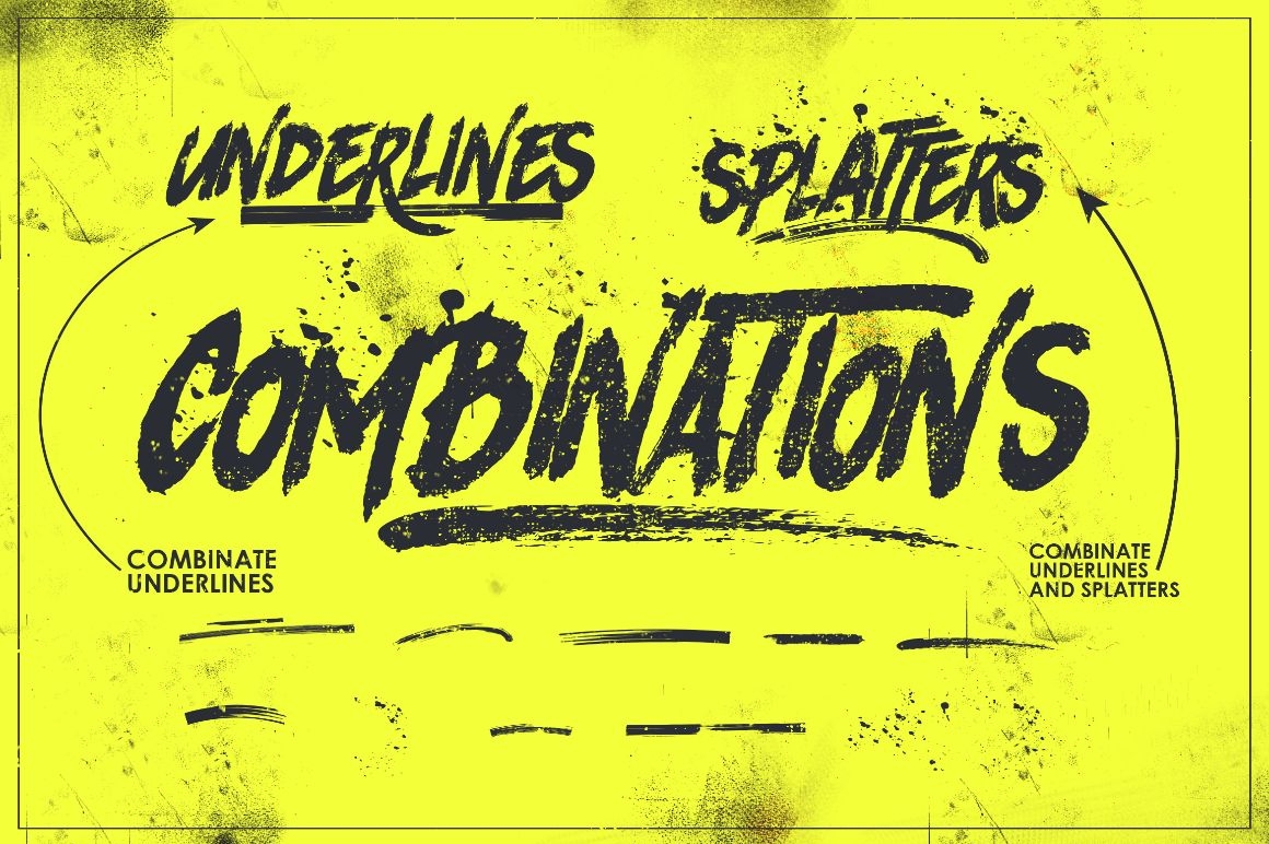 RHINOS ROCKS SWASHES Swashes - EXTRA 14 Underline swashes and paint splatters. Use them by typing any letter from A to Z and combinating them with regular letters.