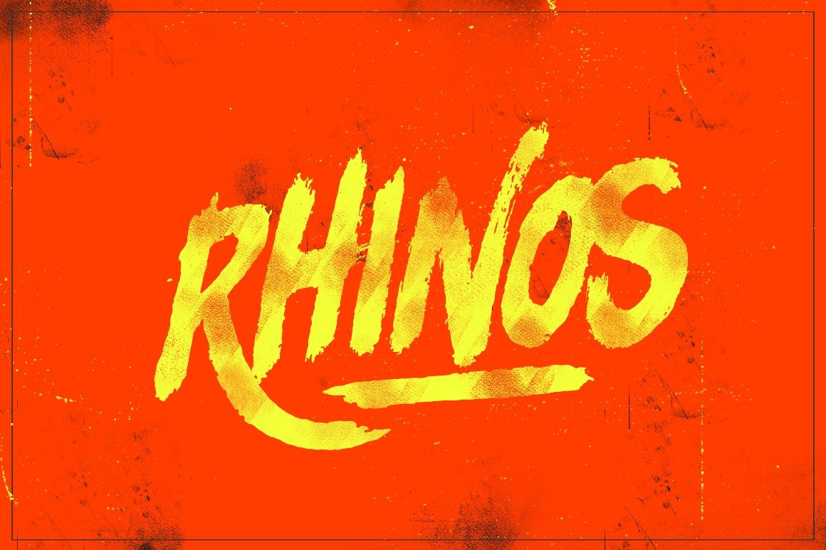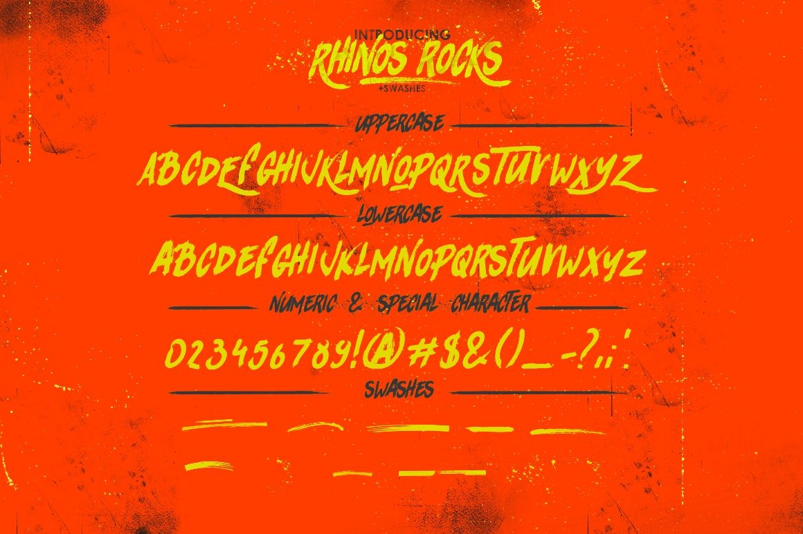 RHINOS ROCKS Left - Hand brushed font including all uppercase letters which has a complete set of A-Z, and support for US glyphs letters. Combinate uppercase and lowercase letters to get interesting text styles.