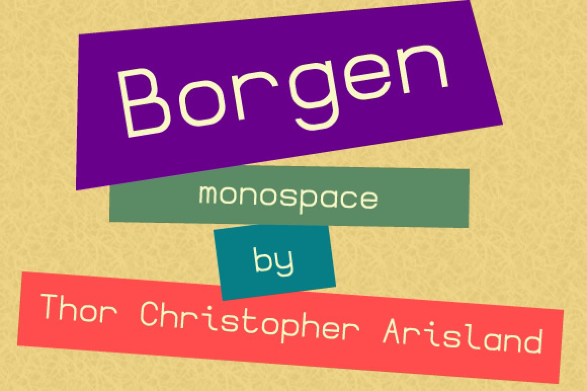 A simple geometric monospace, covers ASCII characters, basic and Latin-1 extension. Regular, oblique, bold and bold oblique. This font is free for personal use.