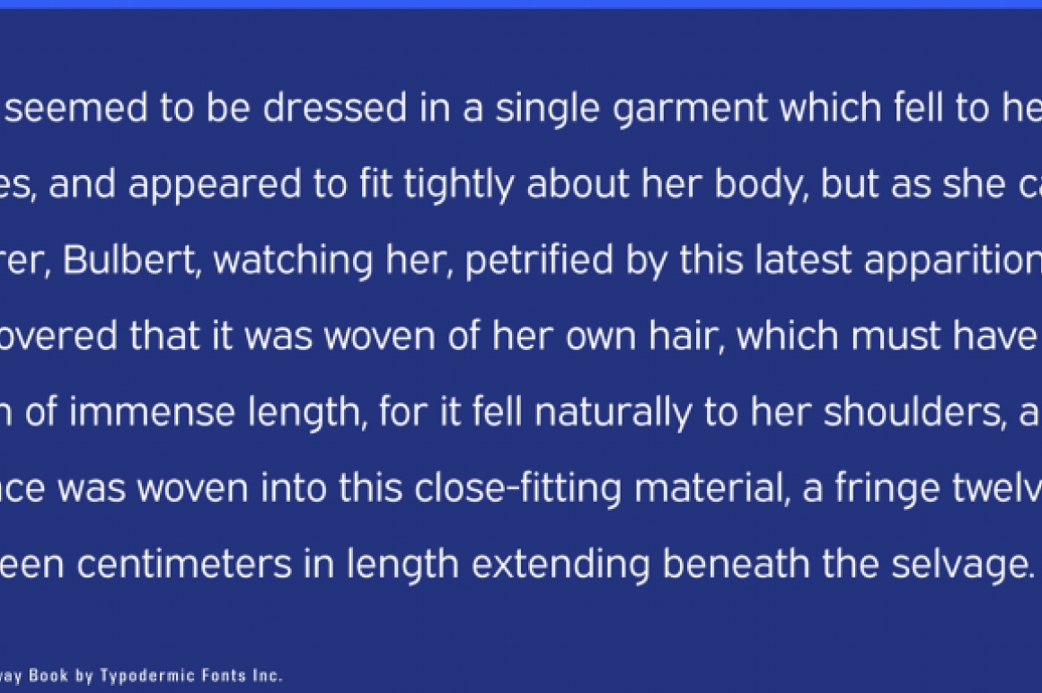If you'd like to embed this font in an app, ebook, on the web or anything that's not covered by the desktop license agreement, visit the link below. You'll find distributors who offer different types of licenses or you can contact me for help.