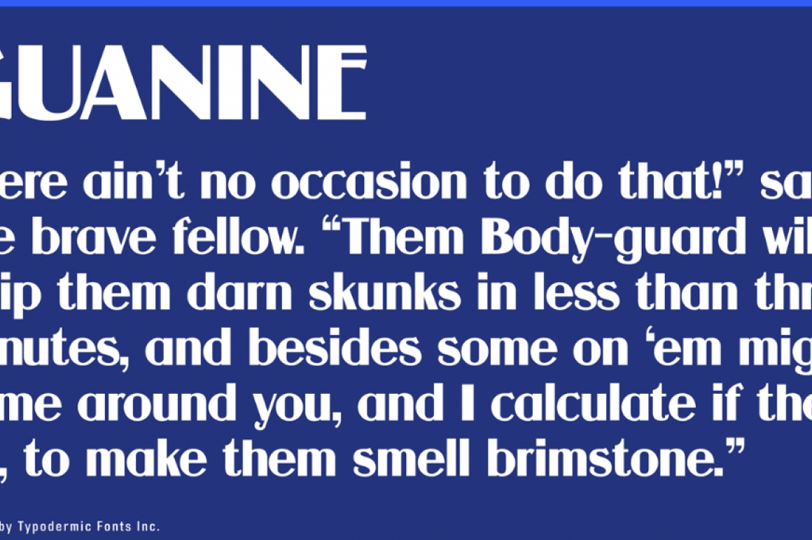 Guanine is an old timey display font inspired by lettering seen on an old bus.