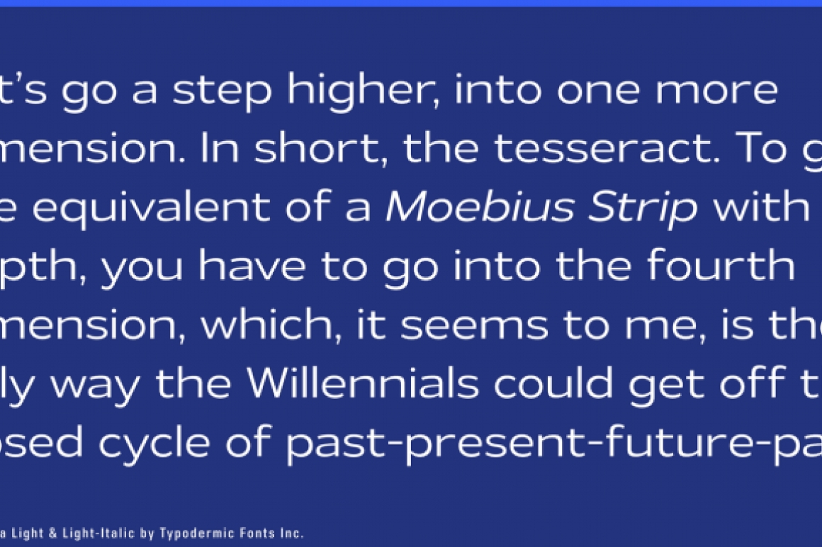 If you'd like to embed this font in an app, ebook, on the web or anything that's not covered by the desktop license agreement, visit the link below. You'll find distributors who offer different types of licenses or you can contact me for help.
