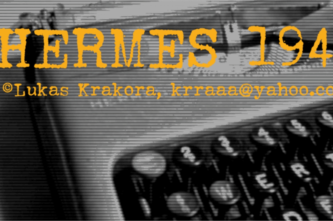 HERMES 1943 font was created by Lukas Krakora and is free for non-commercial use only! If you want to use the font commercially please contact me at my email krraaa@yahoo.com to get the information about pricing. I can add any extra characters for buyers of commercial license.